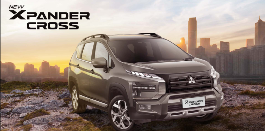 Mitsubishi Xpander Cross memiliki eksterior, diantaranya Tampak Depan Bawah, Fog lamp depan, Lampu depan, lampu belakang, Antena atap, Roof Rail, Branding, Spoiler, Car Name.