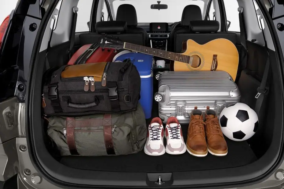 Mitsubishi Xpander Cross memiliki interior, diantaranya Tampak bagasi terbuka, Dashboard , Setir multi fungsi, Tachometer, Kursi depan, Tampak bagasi, Power outlet, Ventilasi AC depan.